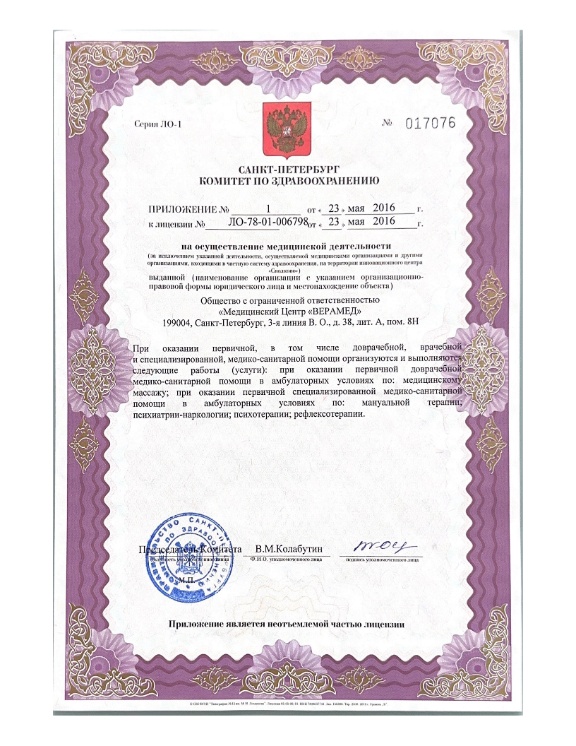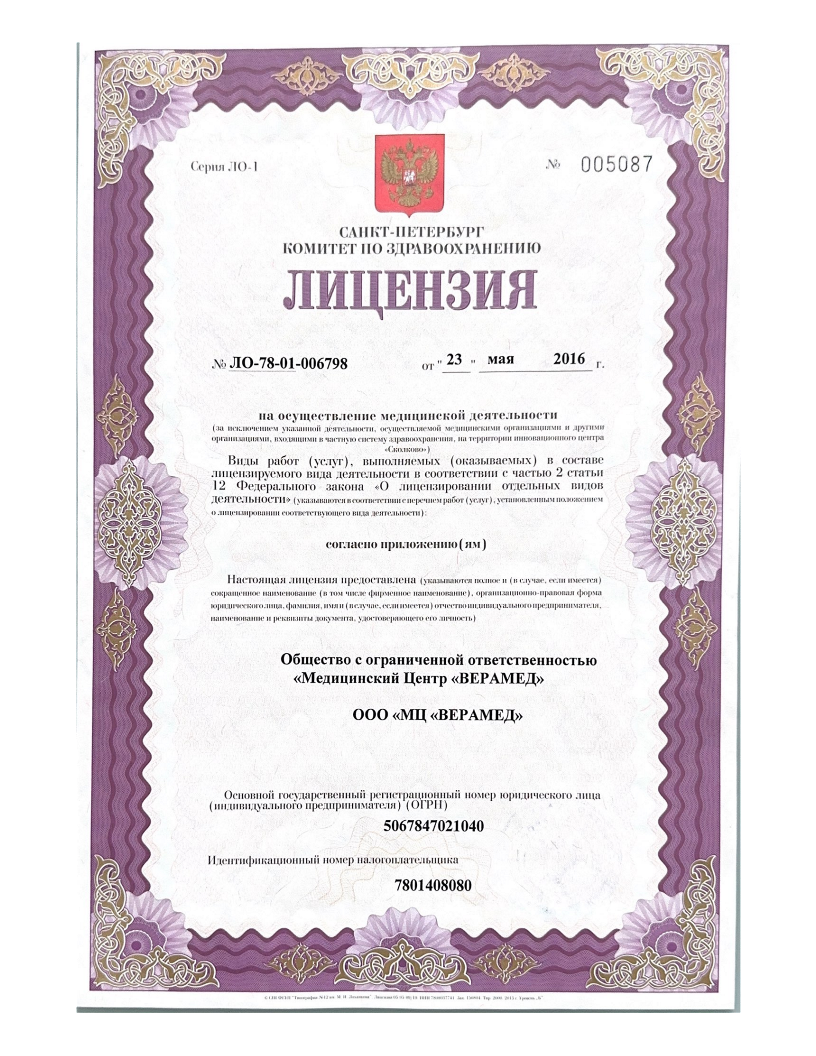ООО "МЦ "ВЕРАМЕД"ИНН 7801408080
